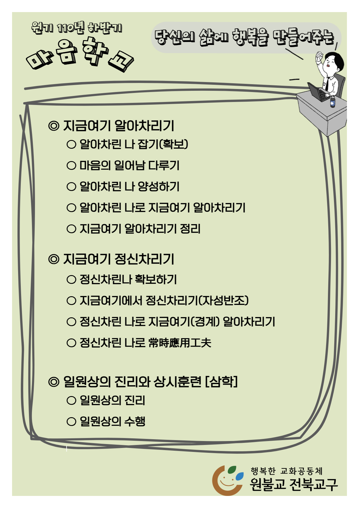 활동은 일요일 법회 시 교당 주보 및 공지안내 시 안내부탁드립니다.