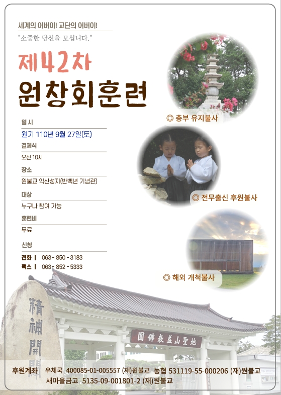 계좌 : 신협 131-016-813806 (재)원불교전북교구