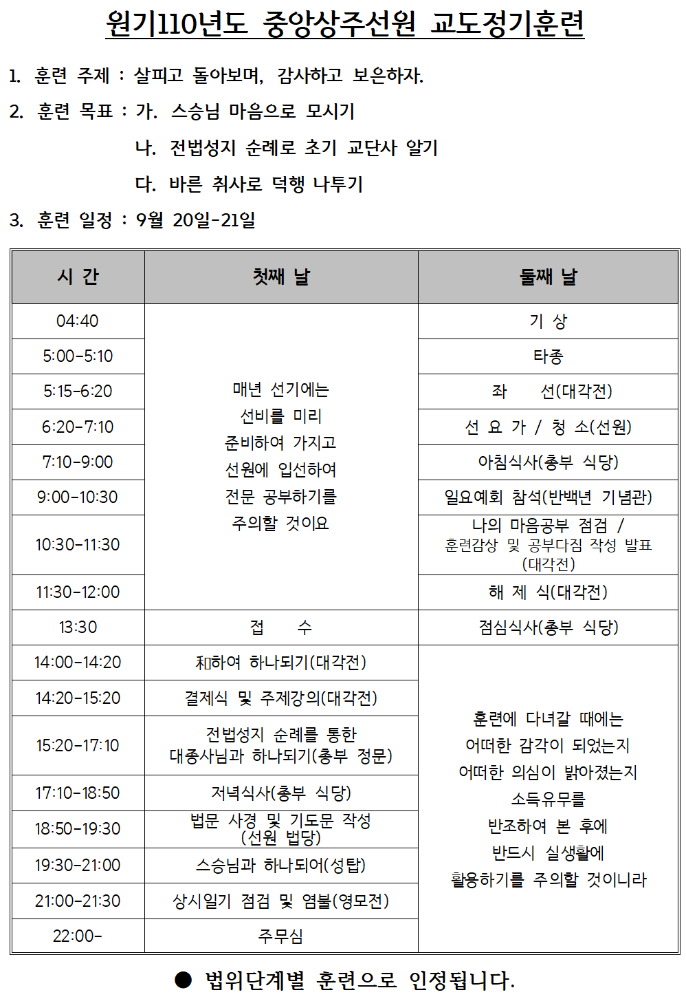 각 교당별로 신청바랍니다.(~9/30일 까지)