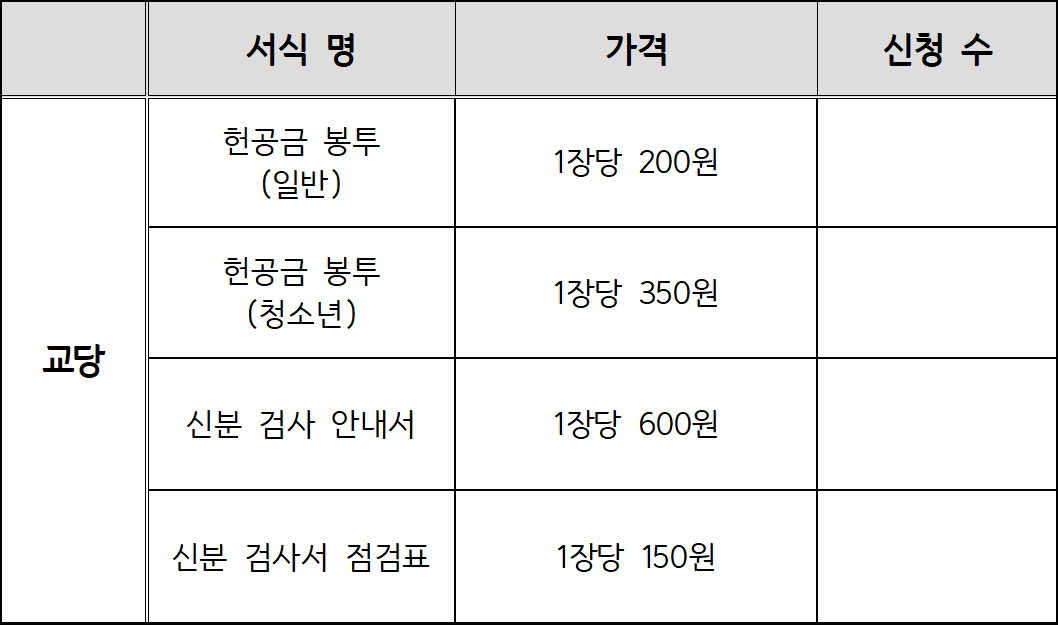 2. 재발급 신청 시에는 신청자법명과 종류를 교구로 알려주세요.