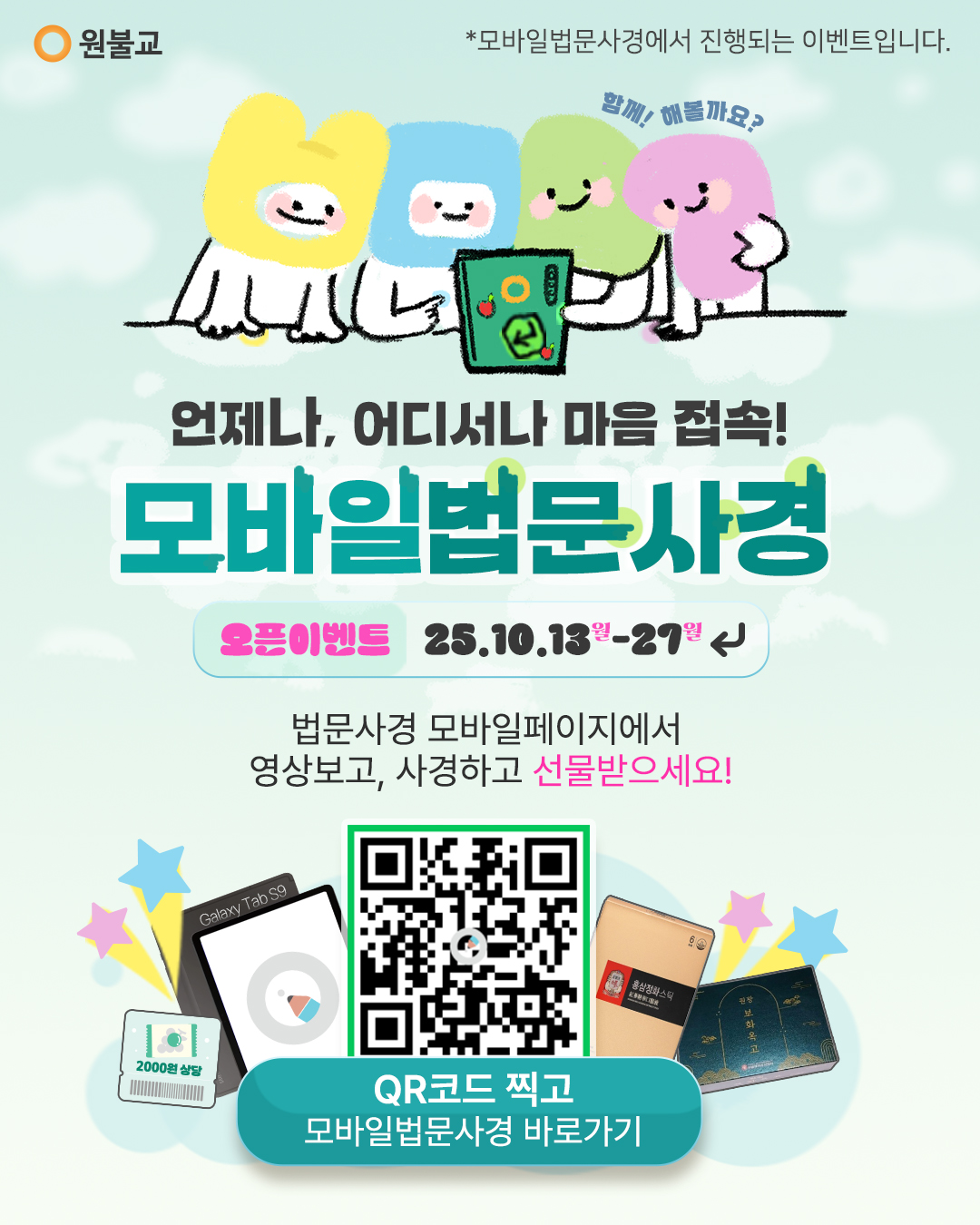 활동은 일요일 법회 시 교당 주보 및 공지안내 시 꼭 안내부탁드립니다.