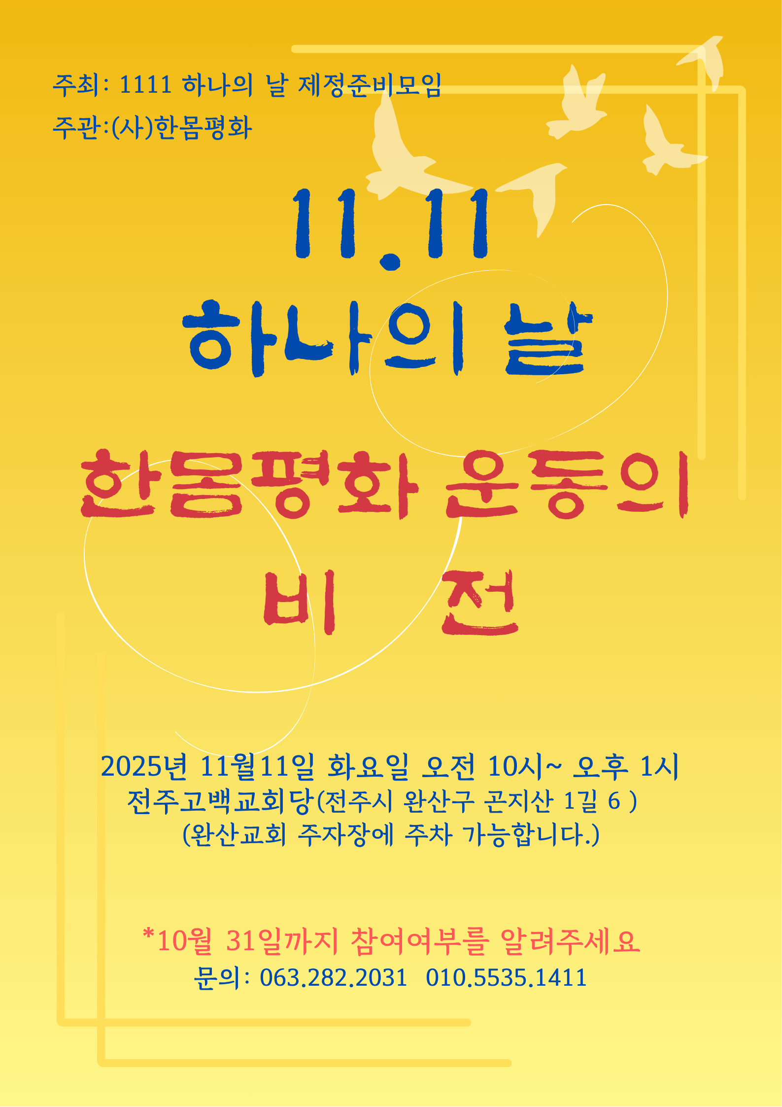 - 일시 및 장소: 11월 11일(화), 오전 10시 / 고백교회
