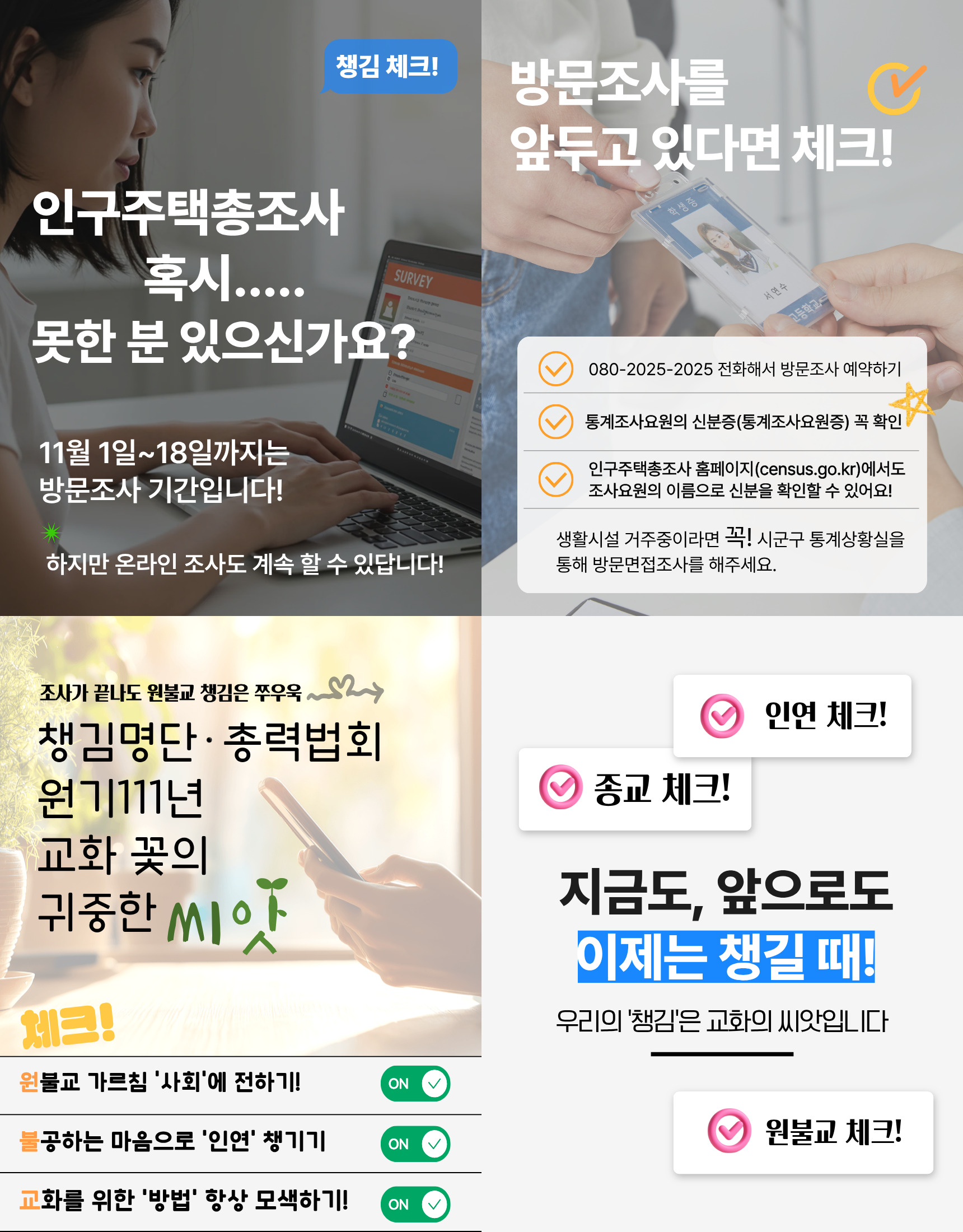 활동은 일요일 법회 시 교당 주보 및 공지안내 시 안내부탁드립니다.